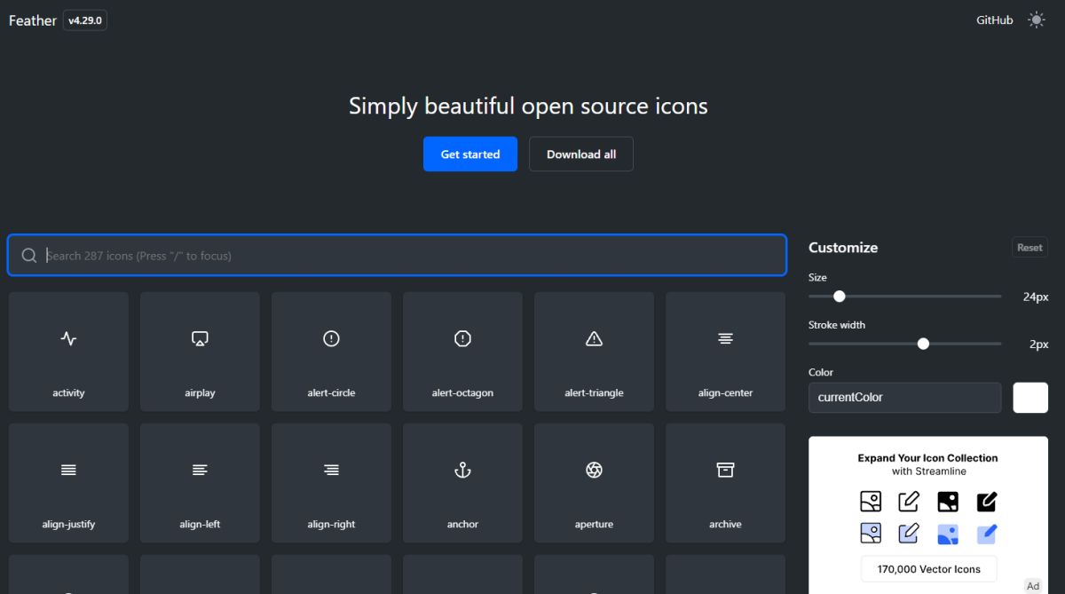 ⭐ 3. Feather Icons – Iconos minimalistas, puros y elegantes (perfectos para programadores)