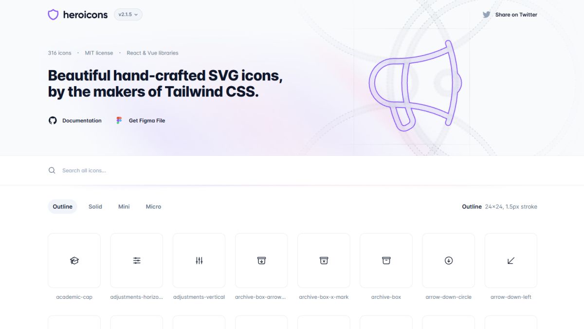 Si quieres diseño moderno, limpio y profesional, Heroicons es la opción: