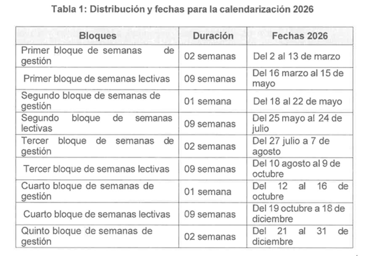Para los docentes y personal educativo, este calendario también define sus periodos de gestión, capacitación y transición entre bloques lectivos.
